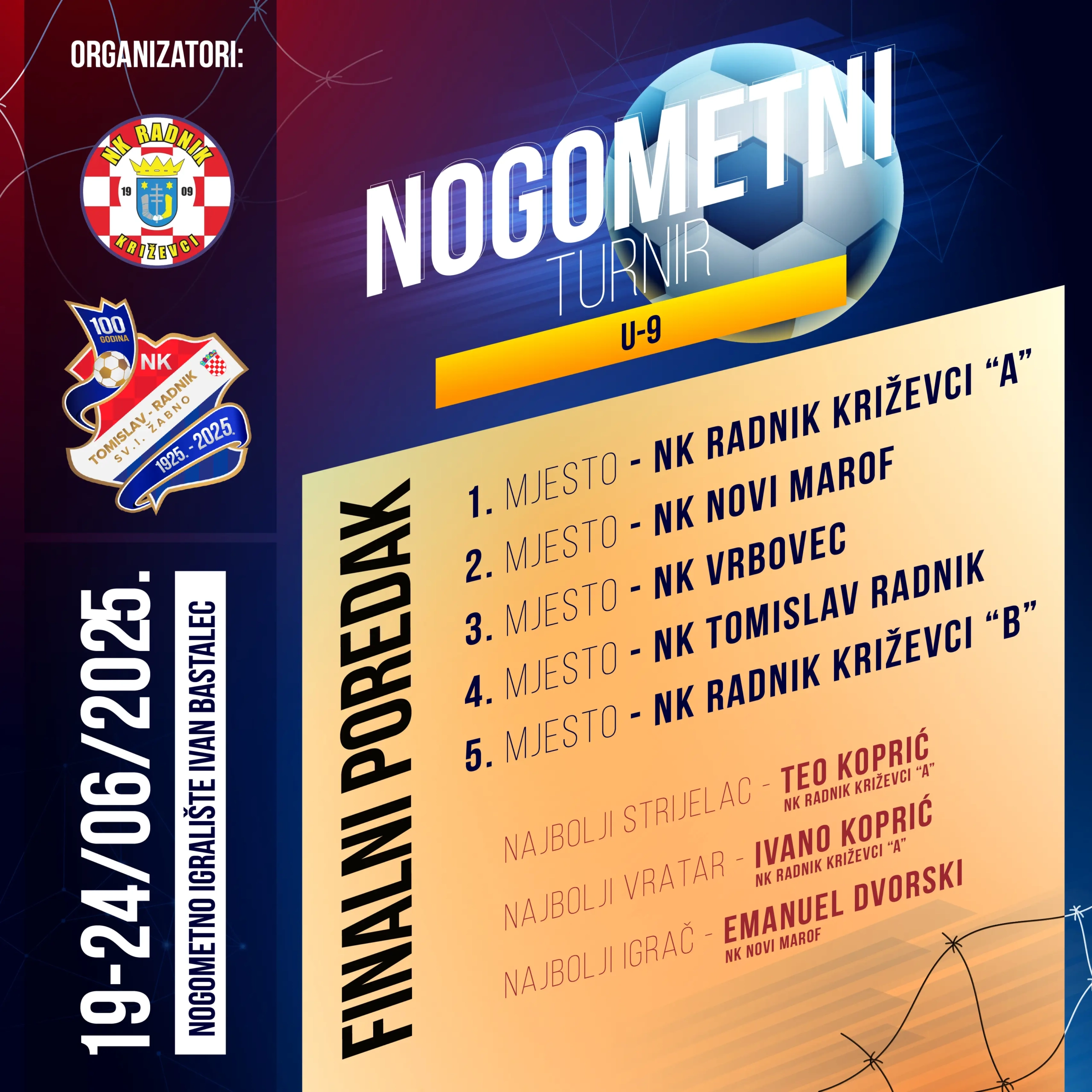 Turnir su zajednički organizirali NK Radnik Križevci i NK Tomislav Radnik, a bio je to još jedan događaj koji pokazuje koliko lokalna zajednica živi za sport, djecu i zajedništvo.