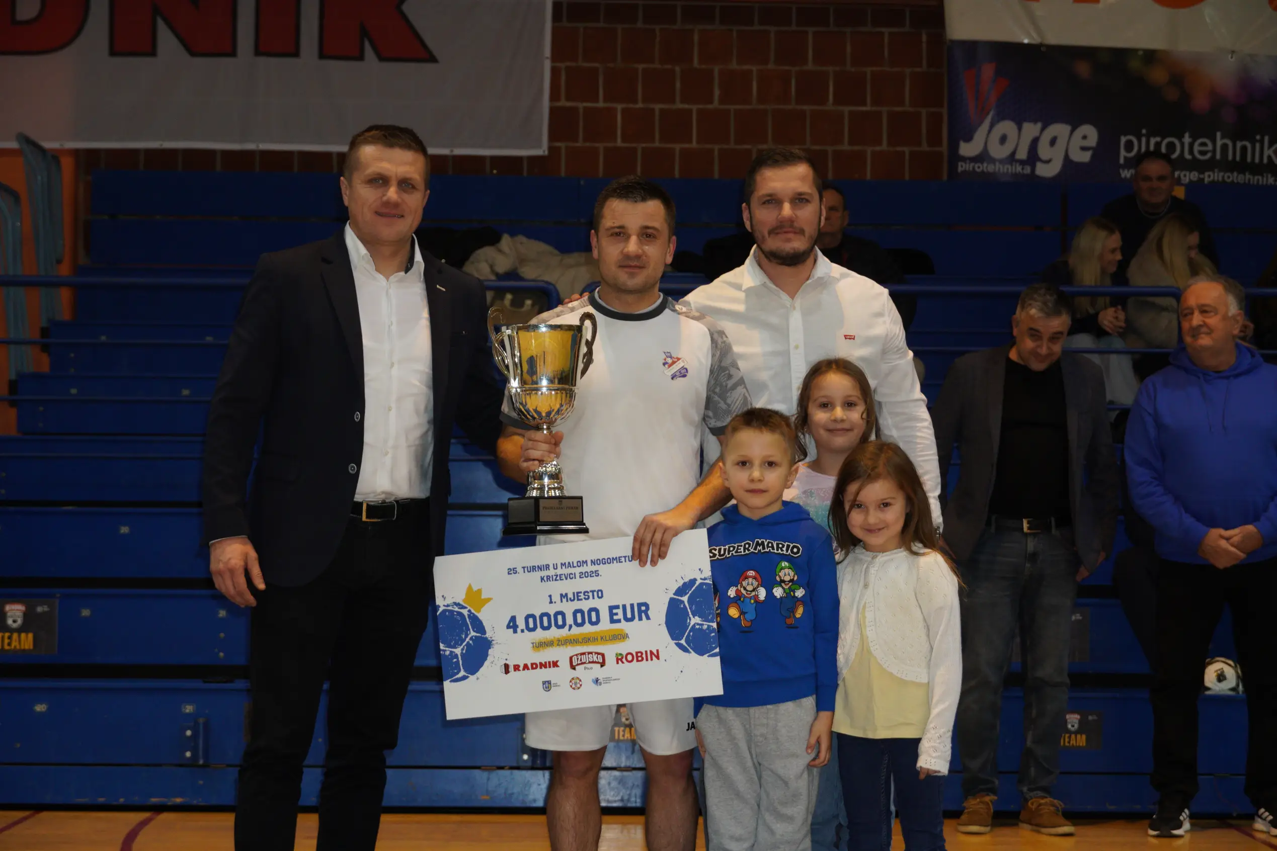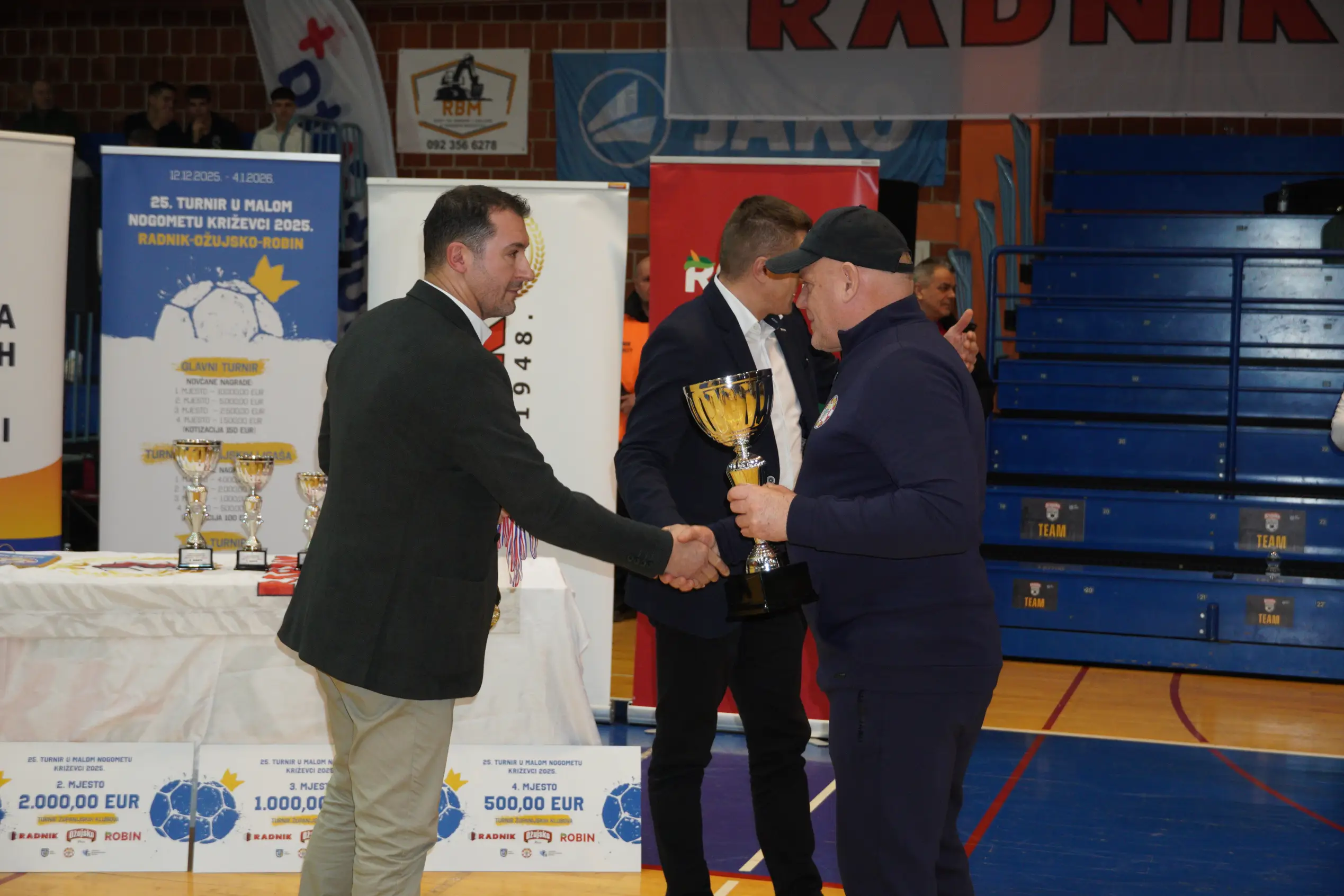 U velikom finalu, pred gotovo tisuću gledatelja koji su napunili križevačku dvoranu i ispunili je glasnom podrškom, naši su dečki pokazali mirnu kontrolu i nogometnu zrelost. Na terenu su se susrele dvije ekipe koje dijele istu nogometnu filozofiju, istu školu i isti pogled na igru. Disciplinu, rad i zajedništvo. U utakmici protiv juniora NK Radnika iz Križevaca, Radnik je slavio 2:0 – golovima Leonarda Ferenčaka i Enza Arauja Bezzere.